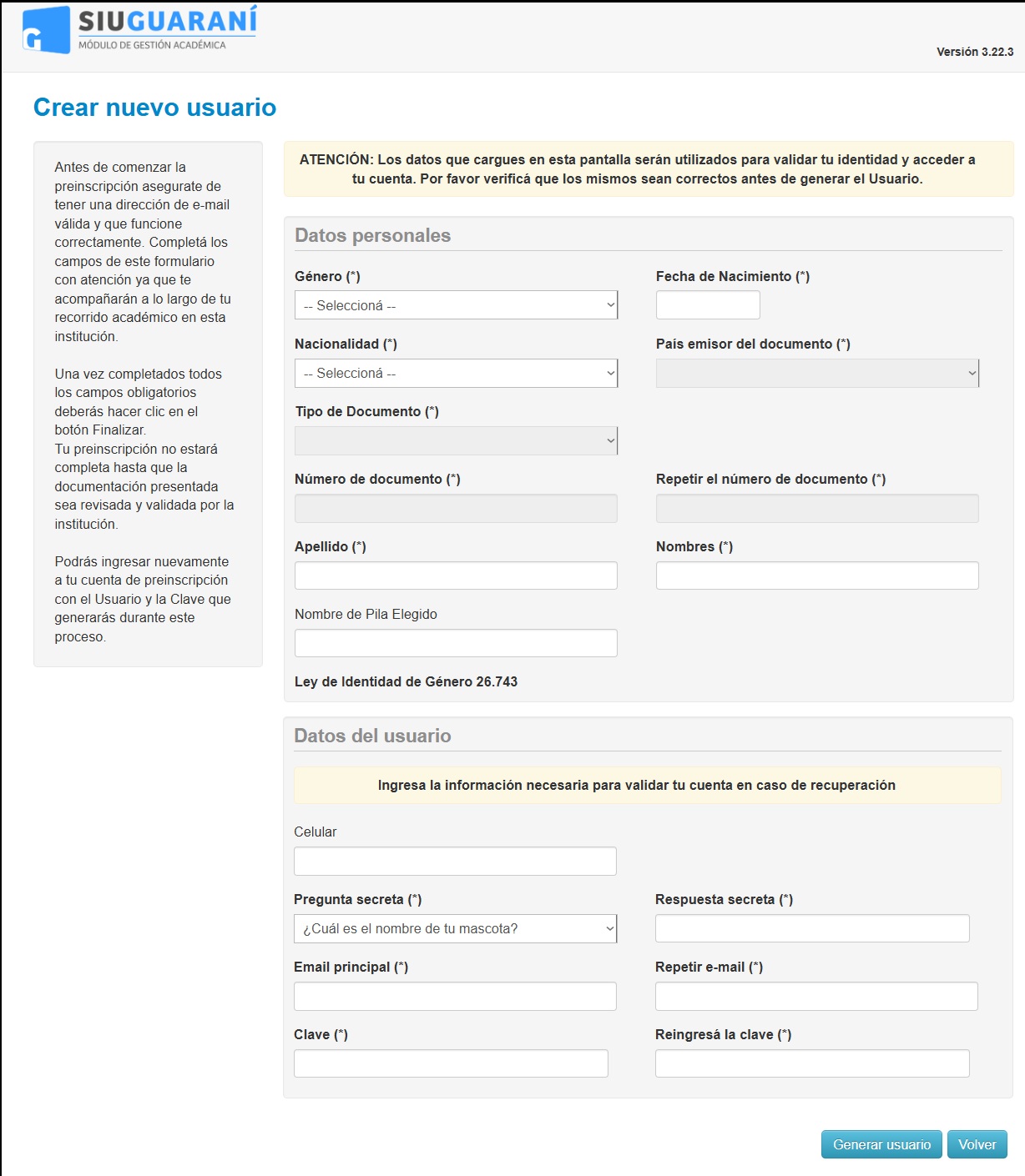 2- En la siguiente pantalla, el Sistema les requerirá una variedad de datos, tanto personales, como de usuario.