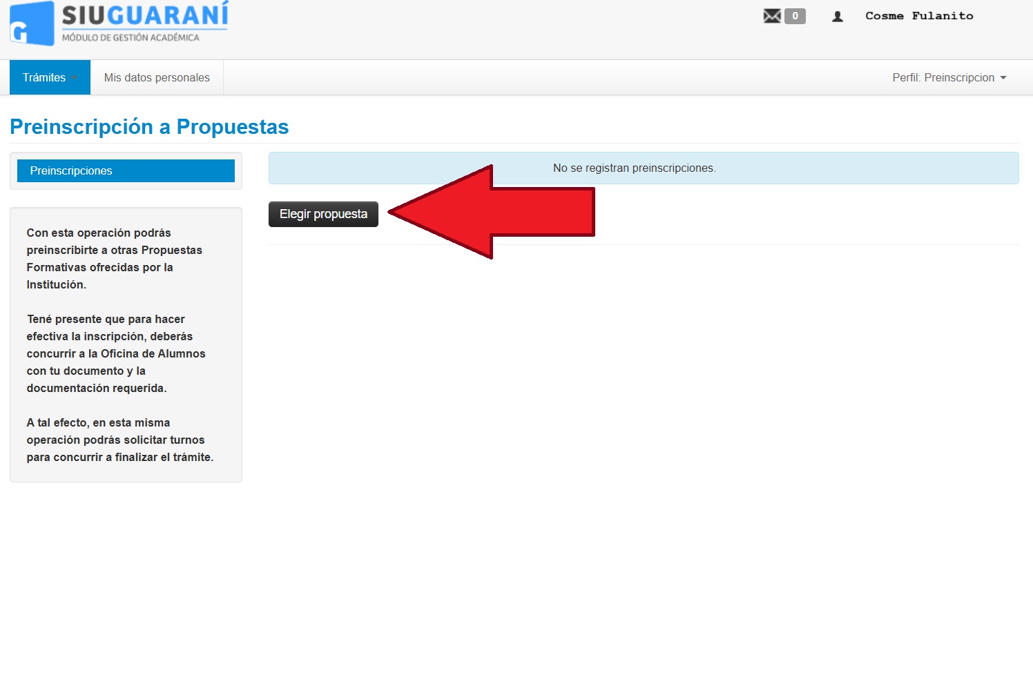 Al seleccionar nuestra Institución, se desplegará nuestra oferta académica y luego de seleccionar la carrera en la que desean cursar serán redirigidos a un enlace para realizar la preinscripción en el Sistema SIU-Guaraní.